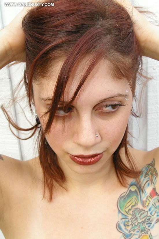 Tattooed redhead Maggy has huge natural tits